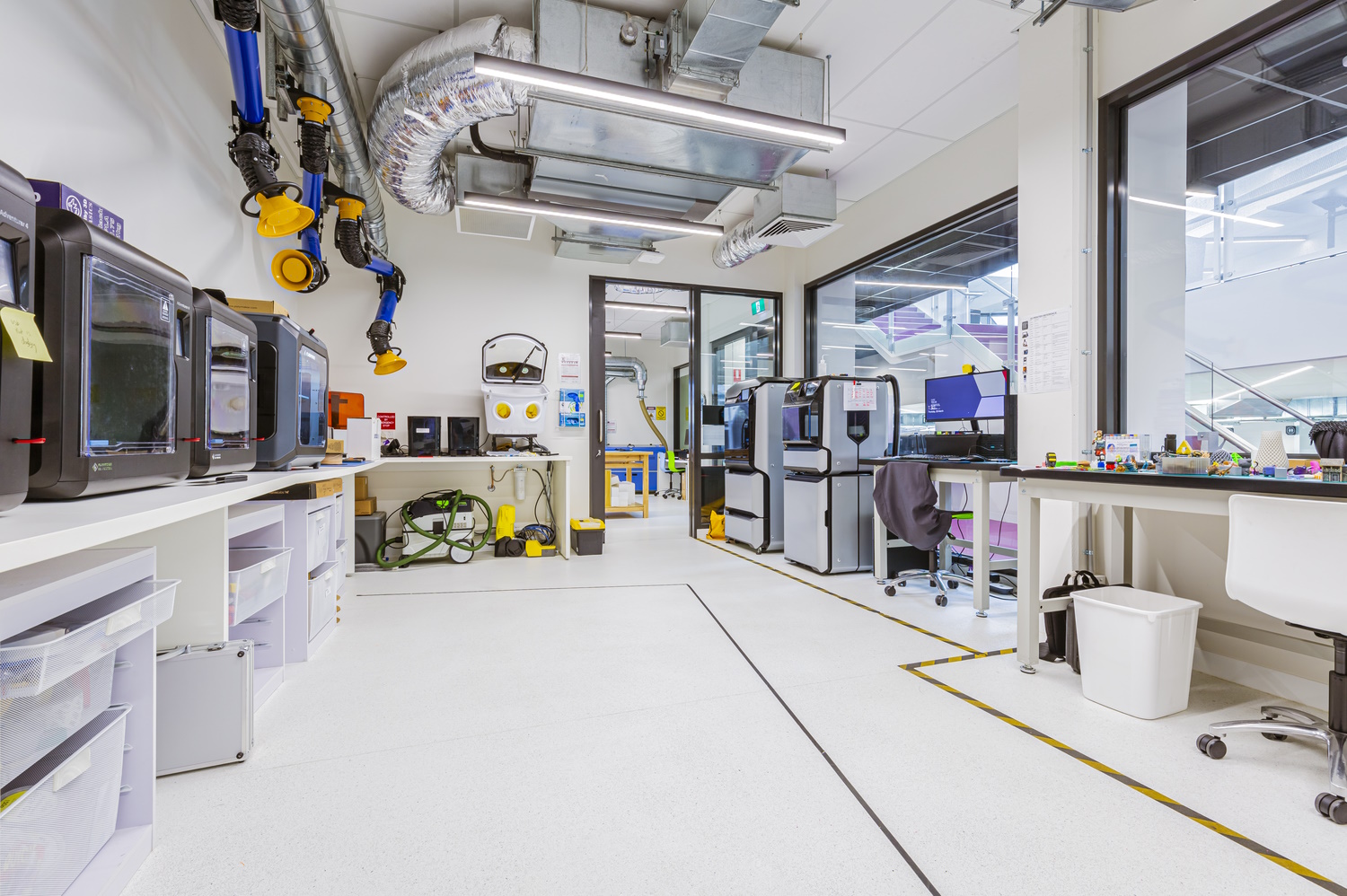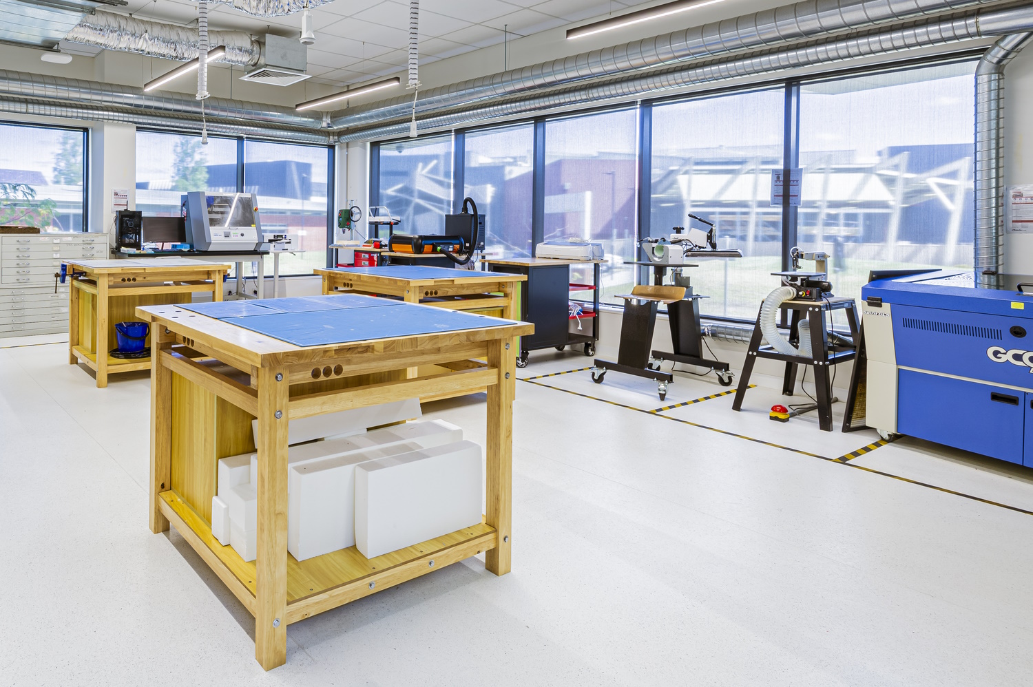 Our spaces bridge a gap between education and industry/community workplaces and are designed to foster a collaborative environment where students, teachers and Tech School staff with diverse skills, expertise and interests can work and learn together.